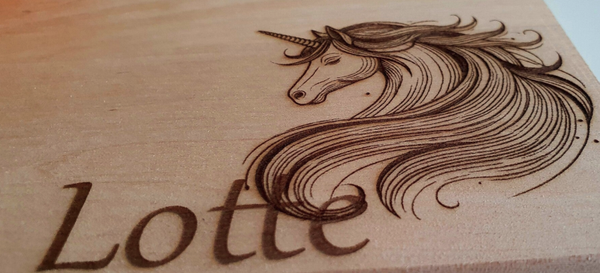 -Gravur: Einhornkopf mit Namen